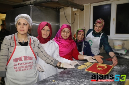 Rize'de faaliyet gösteren Gürcistan Mağduru Aileler Derneği üyesi kadınlar, Zeytin Dalı Harekatı'nda görev yapan Mehmetçik için yaptığı 2 bin 23 lokumu bölgeye gönderdi.