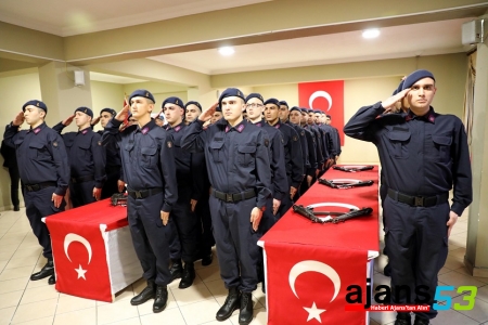 Rize İl Jandarma Komutanlığında vatani görevini yapan 41 kısa dönem er, düzenlenen törenle yemin etti.
