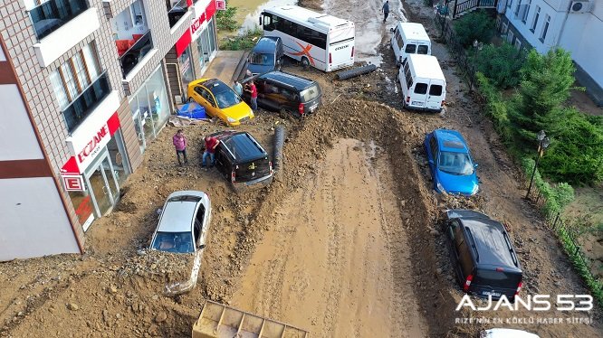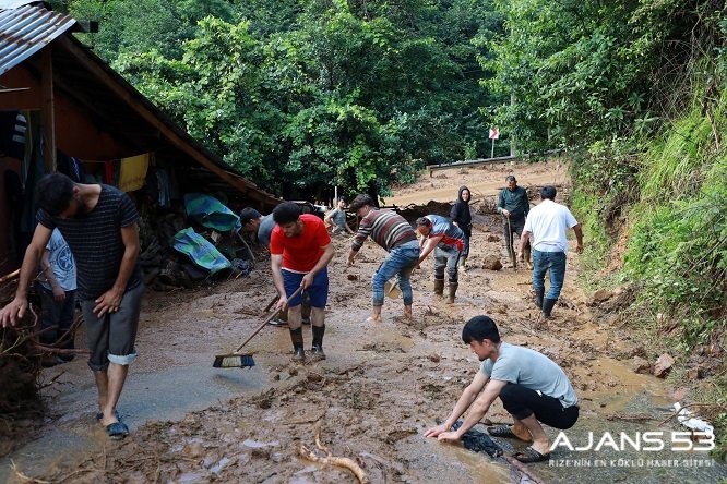 Sel ve heyelan nedeniyle ilçe merkezinde iki caddede yaklaşık 3 metre yüksekliğinde toprak birikintisi oluştu. Gece geç saatlerden itibaren çevre illerden ve Rize'den gelen ekipler ilçe merkezinde temizleme çalışmasını sürdürüyor.