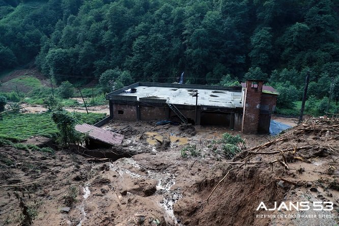 Rize'nin Güneysu ilçesinde şiddetli yağışa bağlı oluşan sel ile heyelanın yol açtığı hasar gün ağarınca ortaya çıktı.