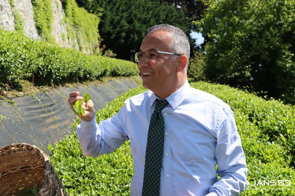 Rize Valisi Kemal Çeber, Rize Belediye Başkanı Rahmi Metin ve ÇAYKUR Genel Müdürü Yusuf Ziya Alim ile birlikte ÇAYKUR Ziraat Çay Bahçesi'nde çay sezonu açılışında çay hasadı yaptı.