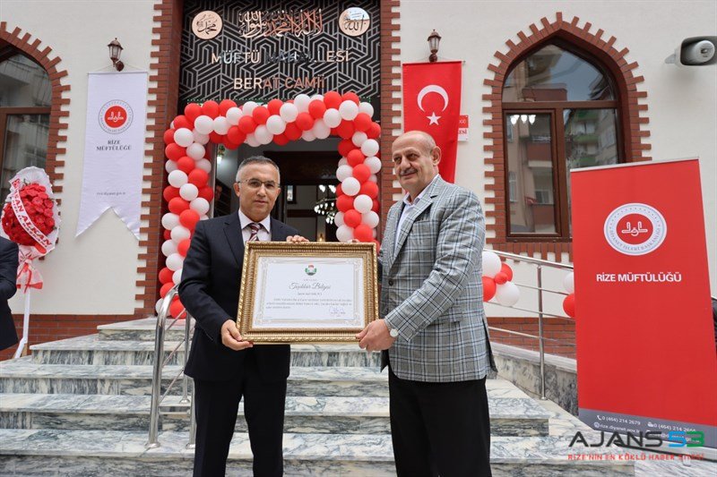 Caminin yapımında destekte bulunan hayırseverlere Rize Valisi Kemal Çeber tarafından teşekkür belgesi verildi.