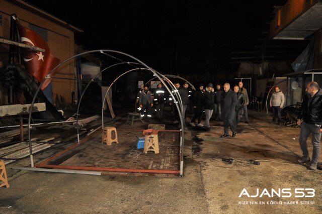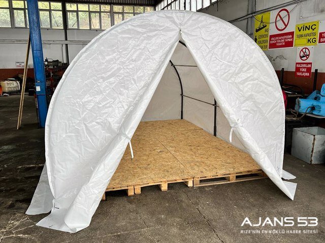 Rize Belediyesi tarafından Hatay iline çadır kent kuruyor. İçerisinde depremzedelerin tüm ihtiyaçlarını karşılayacak üniteleriyle birlikte 200 çadırlık çadır kent için Rize Belediyesi atölyesinde imalat çalışmaları devam ediyor.