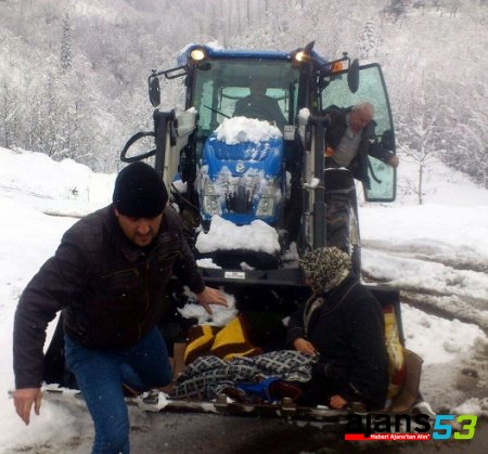 Mahalle yolunun kardan kapanması nedeniyle Şirin'i hastaneye götüremeyen yakınları, durumu muhtar Yener Şirin'e bildirdi. Bir süre sonra kendisine ait iş makinesiyle evin önüne gelen muhtar Şirin, bacağı kırılan Halise Şirin'i aracın kepçesine konulan yastık ve battaniyenin üzerine yatırdı.