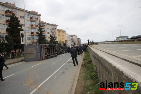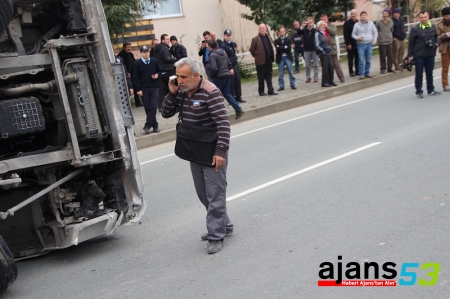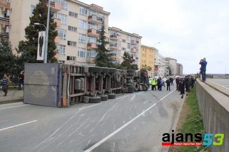 Rize’de meydana gelen trafik kazasında rot kolu kırılan TIR kontrolden çıkınca üç şerit değiştirip takla atarak durabildi.