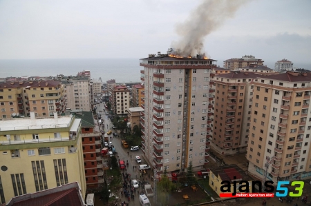 Rize'de 14 katlı binanın çatısında çıkan ve itfaiye ekiplerince söndürülen yangın paniğe yol açtı.