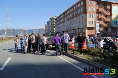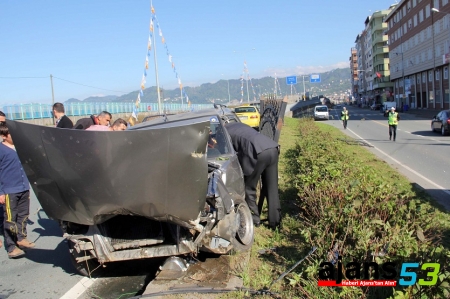 Karadeniz Sahil Yolu'nun Camiönü Mahallesi mevkisinde, İbrahim Gündoğdu'nun (22) kullandığı 53 HL 467 plakalı otomobil, sürücünün direksiyon hakimiyetini kaybetmesi sonucu refüje çarptı.
