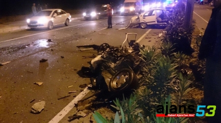 Kaza ilçeye bağlı Yalıboyu mevkiinde saat 00.30 sıralarında meydana geldi. Edinilen bilgiye göre, Murat Demir yönetimindeki 61 TR 987 plakalı otomobil seyir halinde iken karşı yönden Orhan Yılmaz’ın kullandığı 61 KG 010 plakalı yakıt tankeri ile çarpıştı. Kazada otomobil parçalara ayrılırken, yakıt tankeri ise kontrolden çıkarak yol kenarındaki bir kamyonete ve bir eve çarparak durabildi.