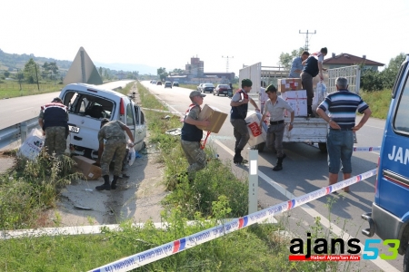 -Damadın yaralandığı, babasının ise hayatını kaybettiği kazada yola savrulan çeyiz eşyalarını jandarma ekipleri topladı