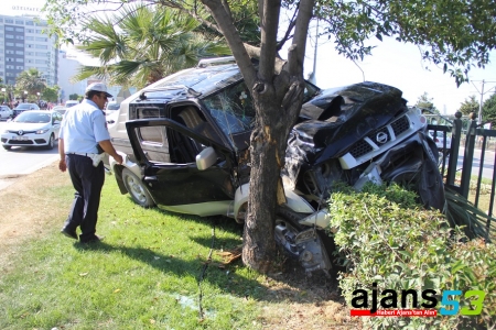 Kaza, İlkadım ilçesi Kale Mahallesi Atatürk Bulvarı Vilayet karşısında meydana geldi. Edinilen bilgiye göre, Hüseyin Ak (51) idaresindeki 17 HV 956 plakalı kamyonet, direksiyon hakimiyetinin kaybedilmesi sonucu yoldan çıkıp refüjdeki ağaçlara çarptı. Kamyonet palmiye ağacını yerinden söküp üzerine çıktı. Kazada araç sürücüsü Hüseyin Ak ile yanındaki Hatice Ak (52) yaralandı. Yaralılar, 112 Acil Servis ekipleri tarafından ambulansla Gazi Devlet Hastanesi'ne kaldırıldı.