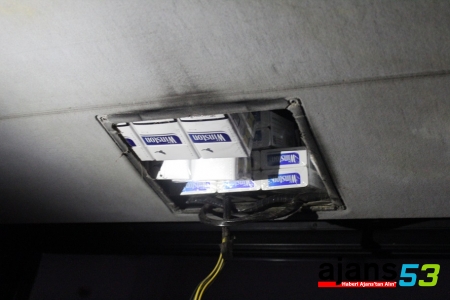 Arama hangarına çekilen otobüste, çay ve tütün dedektör köpeği "Donna"nın yardımıyla arama yapıldı. Köpeğin tepkisi üzerine otobüsün üst havalandırma boşluğunda arama yapan ekipler, 2 bin 500 paket kaçak sigara ele geçirdi.