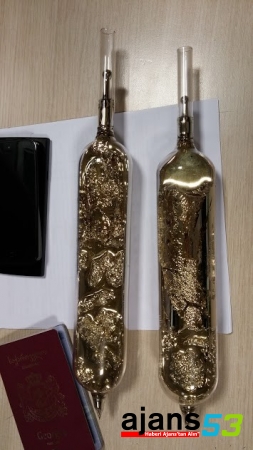 X-ray cihazının ikaz vermesi üzerine N.K. ve I.A. ekipler tarafından durduruldu, üzerleri ve bagajları arandı.