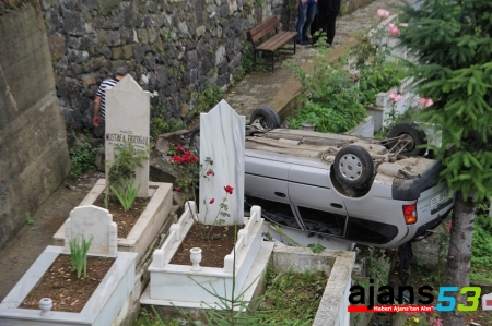 Mezarlığa düşen araç bulunduğu yerden çekiciyle çıkarıldı. Kazada mezarlar da hasar gördü.