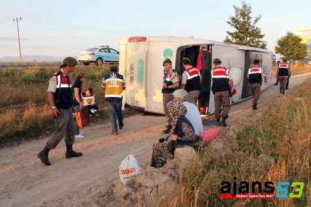 Niğde’de kontrolden çıkan yolcu otobüsü şarampole devrildi. Kazada 1’i çocuk 25 kişi yaralandı.