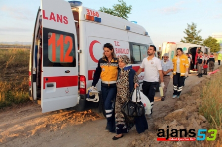 Otobüsün camlarını kırarak dışarı çıkan yolcular, 155’i arayarak haber verdi. Olay yerine çok sayıda ambulans sevk edildi.