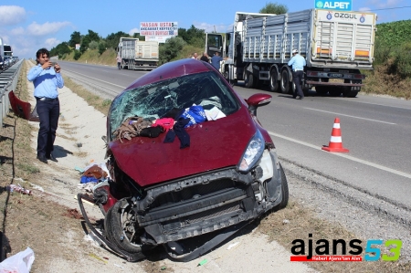 İlçenin Göbeçioğlu mevkinde, Dilek Ezerbolatoğlu (34) idaresindeki 06 HB 2599 plakalı otomobil, sürücünün direksiyon hakimiyetini kaybetmesi sonucu aynı istikamete gitmekte olan Halil Altuğ yönetimindeki, 55 AHJ 41 idaresindeki kamyona çarptı.