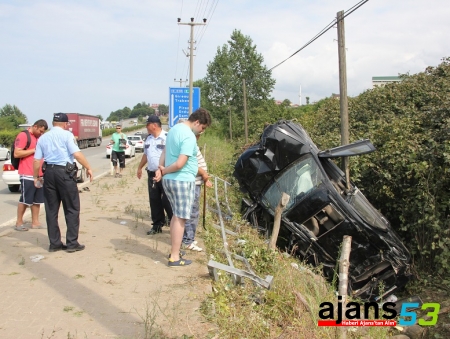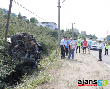 Ordu'dan Giresun yönüne giden Mustafa Aksu yönetimindeki 34 GG 8504 plakalı otomobil, Eğrice plajlar mevkisinde, sürücüsünün direksiyon hakimiyetini kaybetmesi sonucu yolun kenarındaki fındık bahçesine devrildi.