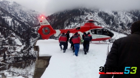 Rize'nin Çayeli ilçesinde, hidroelektrik santrali inşaatında yüksekten düşen harita mühendisi, 12 kişilik ekibinin yoğun çabasıyla kurtarılarak ambulans helikopterle hastaneye götürüldü.