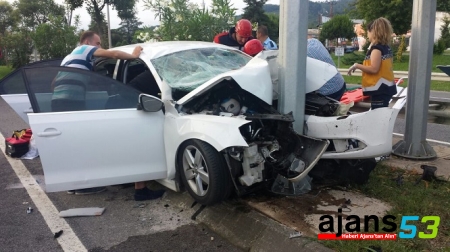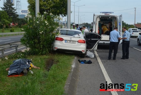 Alınan bilgiye göre, Rize'den İstanbul'a gittiği belirtilen Vural Muşdal (52) idaresindeki 34 VM 9353 plakalı otomobil, Fatsa Büyük Sanayi Sitesi kavşağında refüjdeki TEDES direğine çarptı.