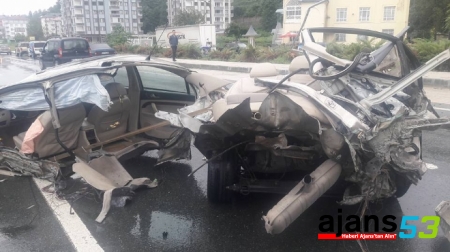 Rize’nin Çayeli İlçesi’nde meydana gelen trafik kazasında ikiye bölünen aracın sürücüsü kazadan yara almadan kurtuldu.