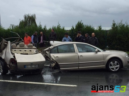Rize’nin Çayeli İlçesi Karadeniz Sahil Yolu Taşhane Mahallesi geçişinde meydana gelen trafik kazasında otomobil ikiye bölündü. Sabah saatlerinde meydana gelen kazada İbrahim T. (45) yönetimdeki 53 FK 9... plakalı otomobil yolun kaygan oluşu nedeni ile direksiyon hakimiyetini kaybederek yol üzerinde bulunan gabari ölçen direğe çarptı. Kazada araç ikiye bölündü. Aracın sürücüsü ikiye bölünen araçtan sağ çıkmayı başardı. Sürücünün sağlık durumunun iyi olduğu öğrenildi. Olayla ilgili inceleme sürüyor.