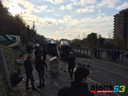 Çarpışmanın etkisi ile devrilen kamyonun kasasındaki asfalt yere savruldu. Otomobil sürücüsü K.S. ağır yaralanarak Recep Tayyip Erdoğan Üniversitesi Eğitim ve Araştırma Hastanesi'nde tedavi altına alındı. Rize Devlet Hastanesi'nde tedavi altına alınan kamyon sürücüsü H.A.'nın ise hafif yaralı olduğu öğrenildi.Kaza sonrası uzun süre trafik dururken, başka kazaların yaşanmaması için trafik polisleri yolda geniş güvenlik önlemleri aldı.