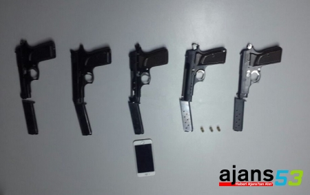 Edinilen bilgiye göre, jandarma ekipleri tarafından bugün Rize’nin Fındıklı İlçesi Karadeniz Sahil Yolu üzerinde gerçekleştirilen yol denetimleri sırasında, Gürcistan’ın Batum şehrinden hareket edip İstanbul’a gitmekte olan uluslararası yolcu taşımacılığı yapan bir otobüs durduruldu. Kimlik kontrolleri sırasında aracı biletsiz bindiği tespit edilen U.K’nın durumunda şüphelenilerek valizi arandı. U.K’nın valizinde 5 adet tabanca ele geçirildi. Ruhsatsız ve el yapımı olduğu anlaşılan tabancalara el konulurken U.K Cumhuriyet Savcısının talimatı üzerine gözaltına alındı. Olayla ilgili inceleme sürüyor.