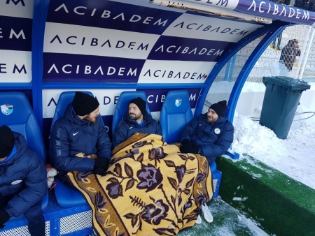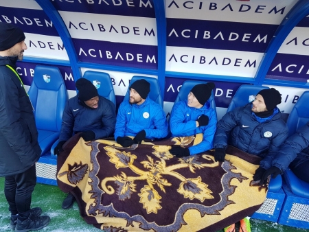 Dün oynanan Erzurumspor maçında Rizespor yedek kulübesine oturan oyunculara battaniye takviyesi geldi.