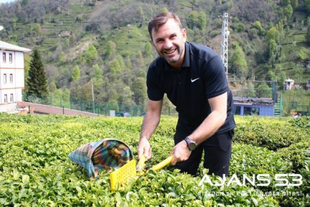 Buruk, bölgede bulunan çay bahçesine girerek bir süre makasla çay toplamayı denedi.