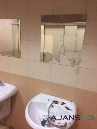 Hız kesmeyen bazı Trabzonspor taraftarları 3 adet taharet musluğu başta olmak üzere, 4 adet klozet takımı, Lavabo ve musluk takımlarının yanında arka tarafta asılı duran yeşil brandayı da keserek zarar verdikleri tespit edildi.