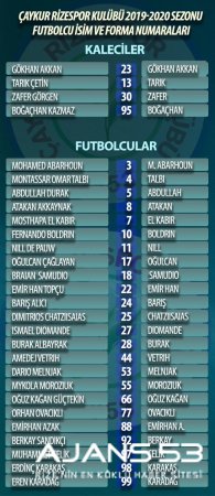 Çaykur Rizespor'da yeni sezonda futbolcuların sırtına taşıyacağı forma numaraları belli oldu. Yeşil - mavili takımda bu sezonda 53 numaralı formayı Hırvat sol bek Melnjak taşırken, 10 numaranın sahibi ise yine değişmeyerek Boldrin oldu.. Önceki Haber Sonraki Haber