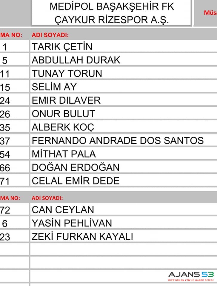 Maçın ardından Medipol Başakşehir'in 5 günlük kampı sona erdi. Çaykur Rizespor'un ise kampı 30 Mart Salı günü sona erecek.