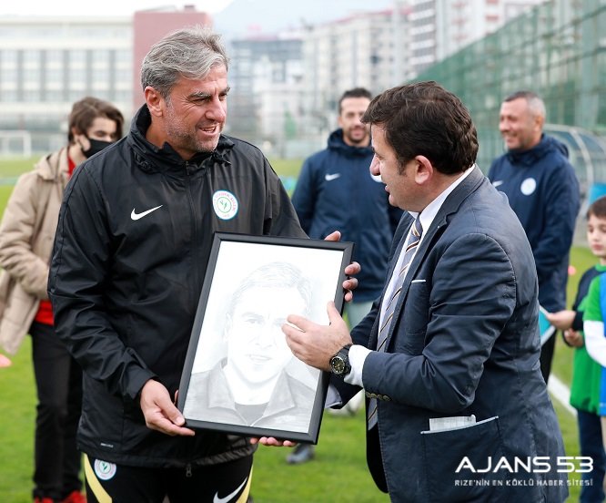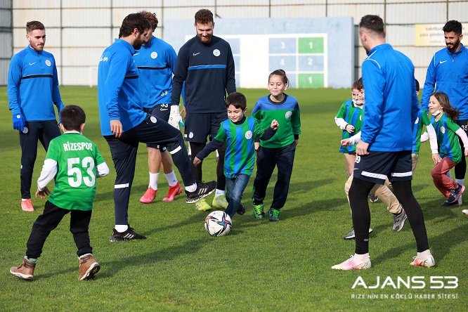 Öte yandan idman öncesi Çay İlköğretim Okulu 2. sınıf öğrencileri, futbolculara kendi çizdiği resimleri hediye etti.