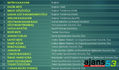 Çaykur Rize Gençlik ve Spor Kulübü Derneğinin 83. Genel kurul toplantısında seçilen yönetim kurulu üyelerinin görev dağılımı aşağıdaki şekilde düzenlenmiştir; Önceki Haber Sonraki Haber