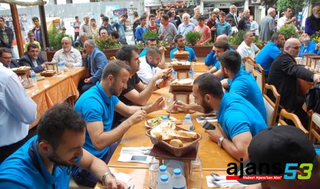 Cumhuriyet Caddesi'nde bir restoranda birlikte yemek yiyen Çaykur Rizesporlu yöneticiler İmdat Sütlüoğlu, Mehmet Erdoğan ve Ömer Faruk Ofluoğlu ile teknik direktör Hikmet Karaman, futbolcular ve AK Parti Rize Milletvekili Hasan Karal, daha sonra Tuzcuoğlu Memişağa Belediye Parkı'nda taraftarlara forma dağıttı. Formaları alabilmek için birbirleriyle yarışan taraftarlar izdihama neden oldu.
