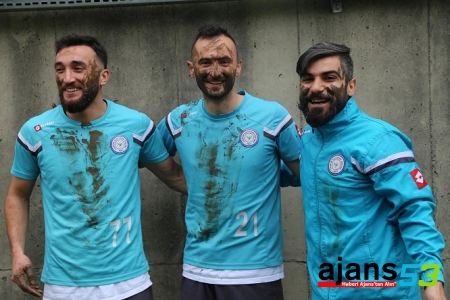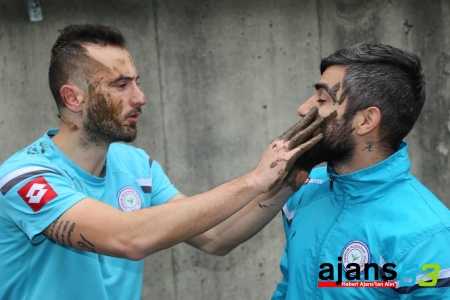 Bazı futbolcuların, fidan dikiminin ardından şakalaştığı gözlendi.