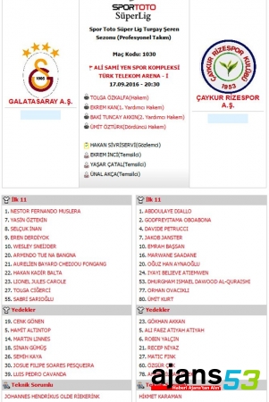 Spor Toto Süper Lig'in 4. haftasında Galatasaray ile Çaykur Rizespor karşı karşıya gelecek.