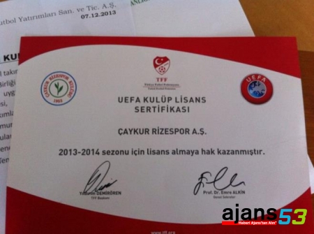 Ç.RİZESPOR UEFA ve ULUSAL KULÜP LİSANSINI BU SEZONDA ALDI..