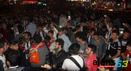 Rize Cumhuriyet Meydanı’na toplanan yüzlerce Beşiktaş taraftarı burada sloganlar atarak takımlarına destek oldular. Havai fişeklerin atıldığı kutlamada Beşiktaş taraftarı meşalelerle yürüyüşe geçen Beşiktaş taraftarı şehirde marşlar eşliğinde şampiyonluk turları attı.