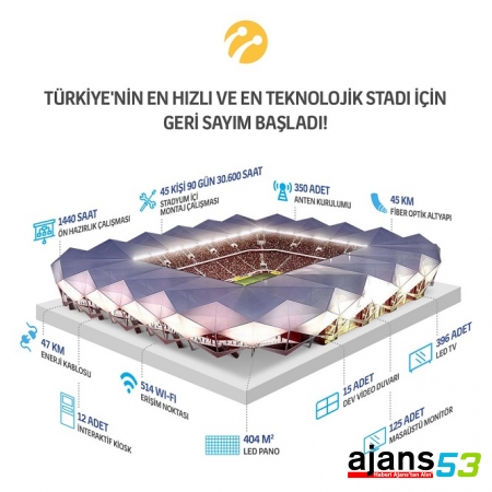 Türkiye’de ilklerin öncüsü olan Turkcell, Trabzonspor’un yeni evini üstün teknolojisiyle donatarak Türkiye’nin en hızlı stadyumu haline getirdi. 18 Aralık 2016’da Cumhurbaşkanı Sayın Recep Tayyip Erdoğan’ın katılımıyla açılacak yeni stadyumda, Türkiye’nin en hızlı mobil internet bağlantısı bulunacak. Yeni stadyumda maç izlemeye gelen Trabzonsporlular, Turkcell’in 4.5G altyapısı sayesinde 375 Mbps hızında kusursuz bir mobil iletişim deneyimi yaşayacak.
