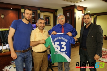 Rize Belediye Başkanı Prof. Dr. Reşat Kasap'ı makamında ziyaret eden Rize Sağırspor Kulübü Başkanı Mehmet Sukas ve kulüp yönetimi, özel olarak hazırlatmış oldukları 53 numaralı formayı Başkan Kasap'a hediye ettiler.