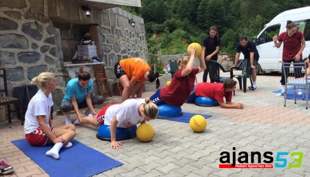 Teknik Direktör Hikmet Vurgun gözetiminde kamp programını uygulayan Dişi Atmacalar, uyum süreci ile birlikte kondisyon depoluyor.