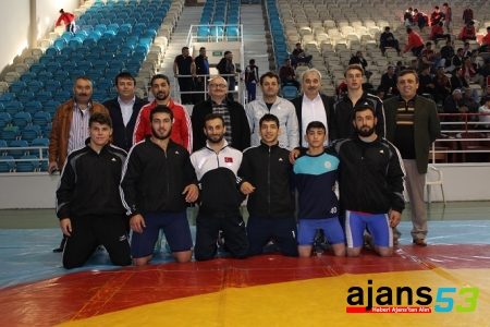Fotoğraflar: Mavi mayolu Çaykurspor’lu güreşçiler.