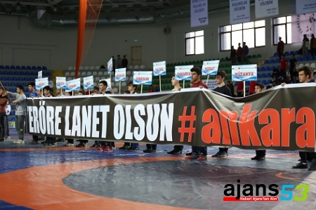 Konuşmaların ardından şampiyona devam ederken karşılaşmaları dünya şampiyonu güreşçi Selçuk Çebi'de izledi.