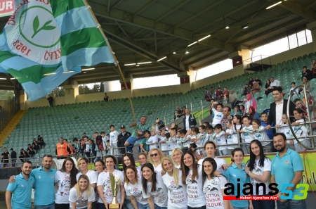 Daha sonra kupa ile stadyum çevresinde şeref turu atan sporcuları, taraftarlar uzun süre ayakta alkışlayarak, “Rize Sizinle Gurur Duyuyor.” Şeklinde slogan attılar.