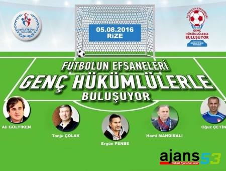 Türk futbolunun efsane futbolcuları Eski Milli futbolcular Ali Gültiken, Tanju Çolak, Ergün Pembe, Hami Mandıralı ve Oğuz Çetin, Rize'de 14-18 yaşlarındaki hükümlü ve tutuklu gençlerle gösteri maçı yapacak.
