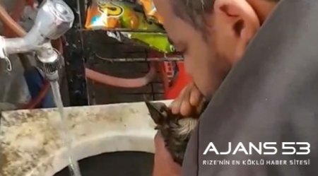Nefes borusuna yemek kaçan yavru köpeği, hayata döndüren Rizeli esnaf..