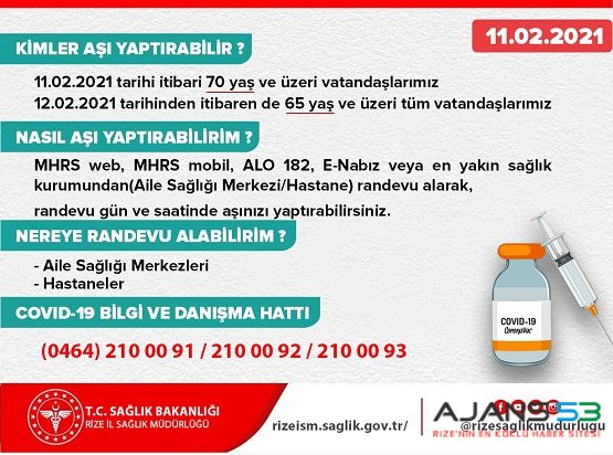 Aşılama aile hekimliklerinde veya devlet hastanelerinde randevu usulü ile yapılmaktadır. Bugüne değin aşı hakkı olduğu halde randevu alamama veya herhangi bir sebeple aşısını yaptıramamış olan ve yaptırmak isteyen vatandaşlarımızın bizzat aile hekimlerini aramaları durumunda randevu hususunda aile hekimlerince kendilerine yardımcı olunacaktır.