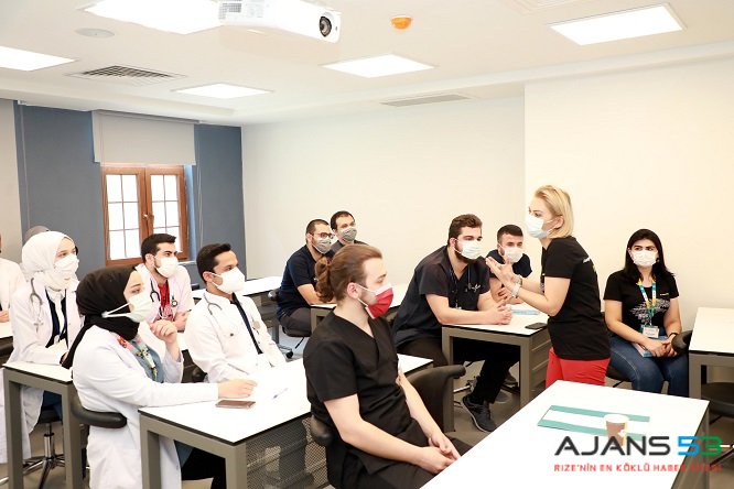 Recep Tayyip Erdoğan Üniversitesi (RTEÜ) Tıp Fakültesi Klinik Simülasyon Eğitim Merkezi'nde (RSİM) gerçekleştirilen uygulamalı eğitimde, doktor adayları 7 farklı senaryoya göre hastalara müdahalede bulundu.