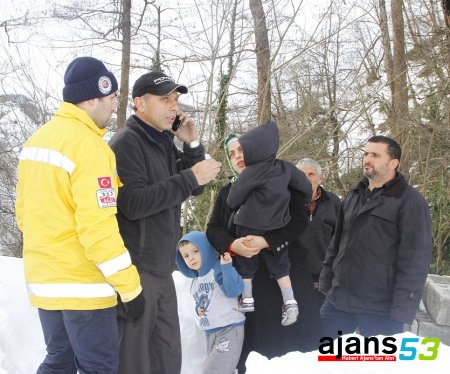 Rize'de Muradiye Beldesi'ne bağlı Elmalı köyünde yoğu kar yağışından dolayı 3 gündür mahsur alan 3 yaşındaki Murat Satır kar paletli araçla kurtarıldı.